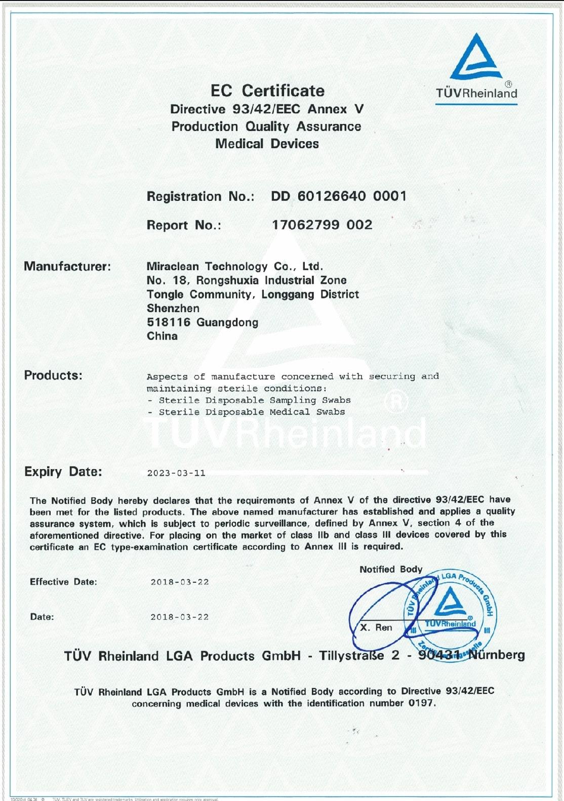 采樣棉簽CE證書
