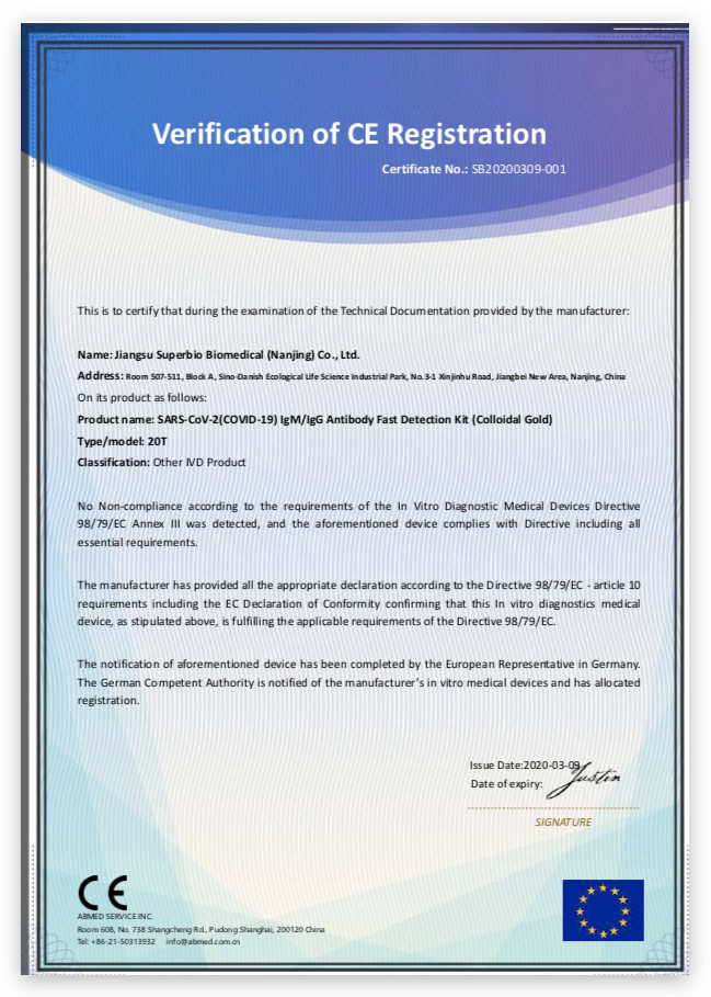 IgM / IgG生物測定試劑盒的DOC